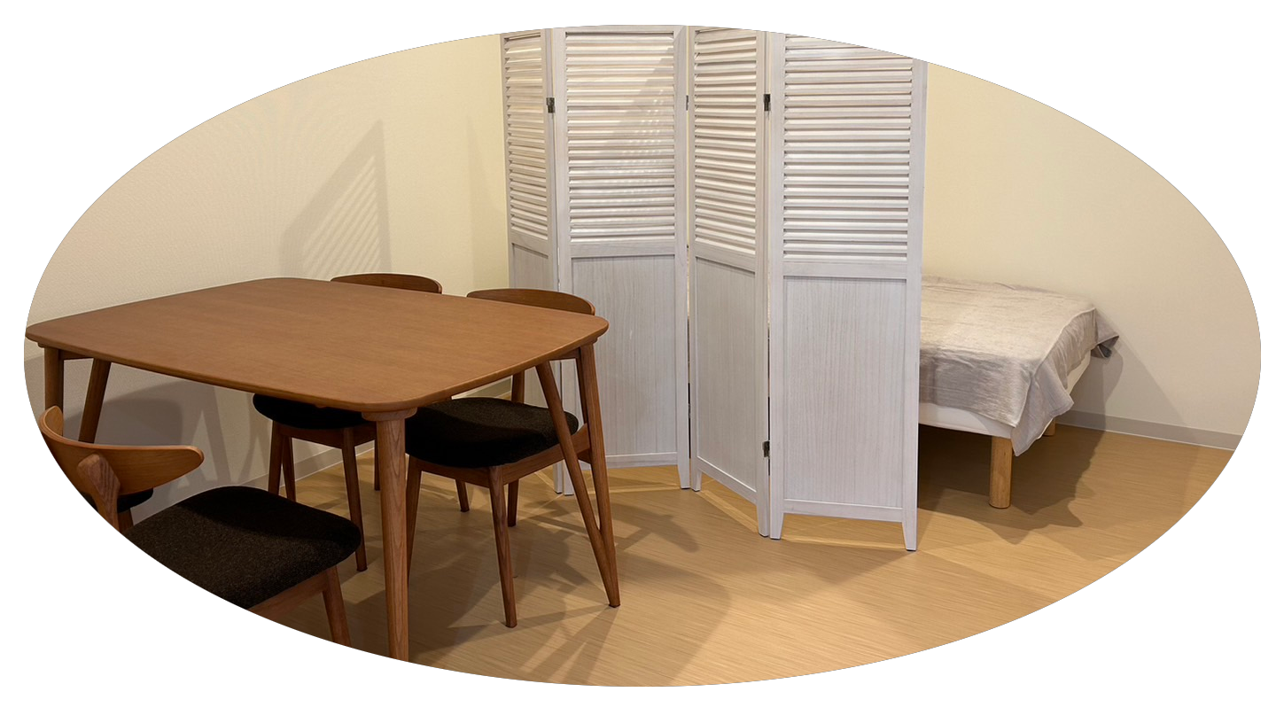 お子様連れの方が安心してお話しできるよう、座談会スペースから見える場所にございます。 おもちゃや絵本、動画などもご用意しております。